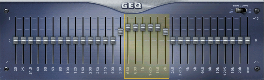 Yellow = Standard Graphic EQ | Green = True Curve (TruEQ)