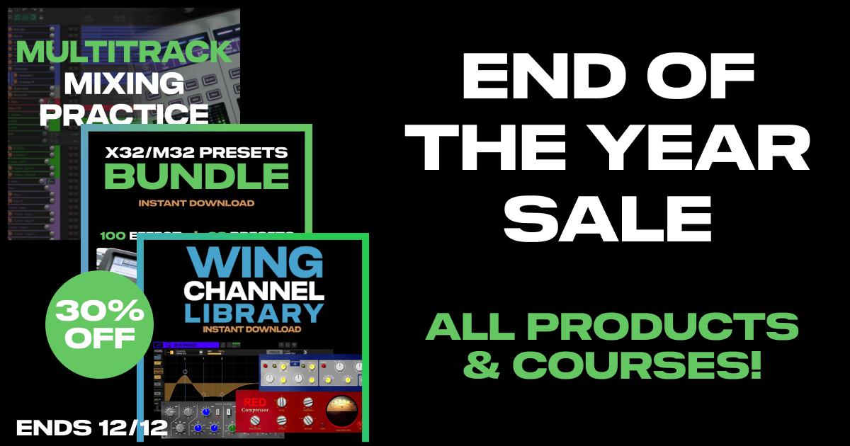 If you’re looking for a start-to-finish way to get mixing on the Behringer X32, join my X32 Fundamentals Course. In this 6 hour self-paced video course, I’ll guide you through the five fundamentals that will help you go from overwhelmed to confident when mixing on the X32.